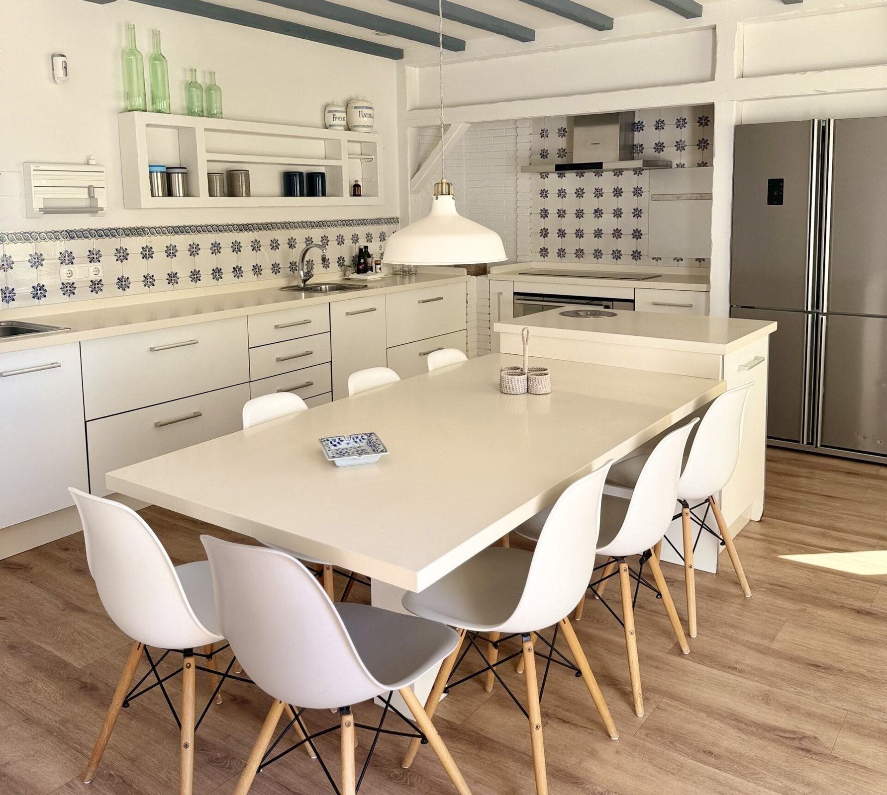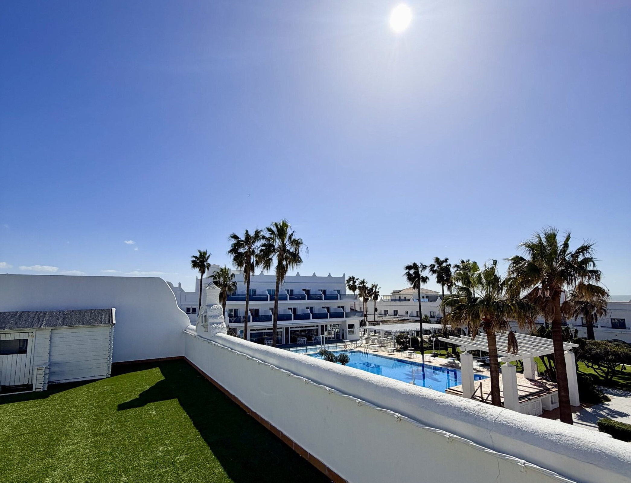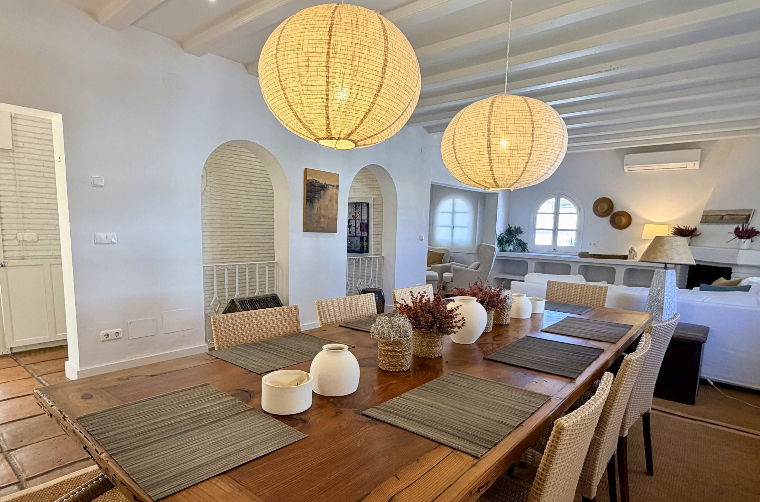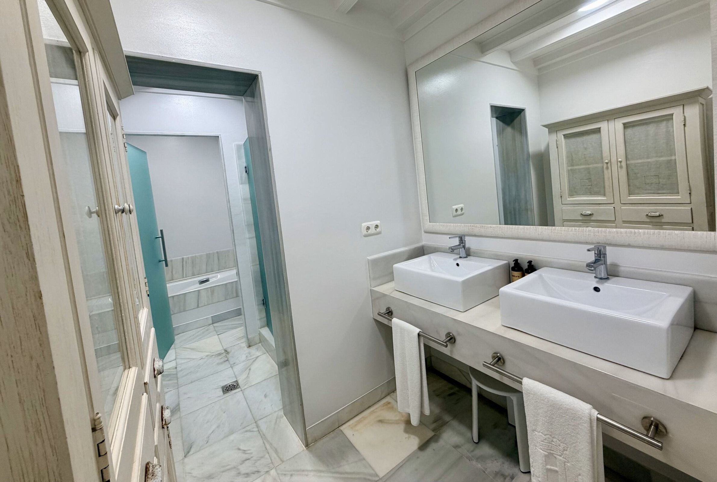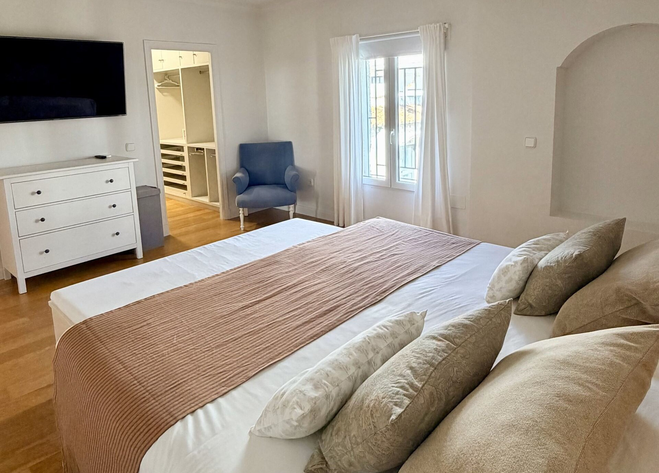 Dúplex exclusivo "La Residencia". Distribuido en dos plantas. En la planta baja cuenta con tres dormitorios: el principal con cama king size, vestidor y baño en suite con bañera y ducha; un segundo dormitorio con cama doble y baño en suite; y un tercero ideal para familias, con camas dobles y baño en suite. En la planta superior dispone de un amplio salón con comedor y TV de 55”, cocina equipada con isla para 8 personas, zona de lavado, aseo y espectaculares terrazas, una de ellas con vistas al mar.